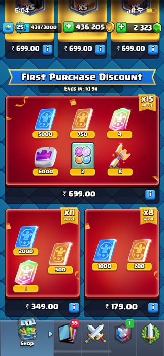 Implementation: Show a limited set of offers upfront in a collapsed view. Use price anchoring by placing easily comparable bundles next to similar-priced coin packs.